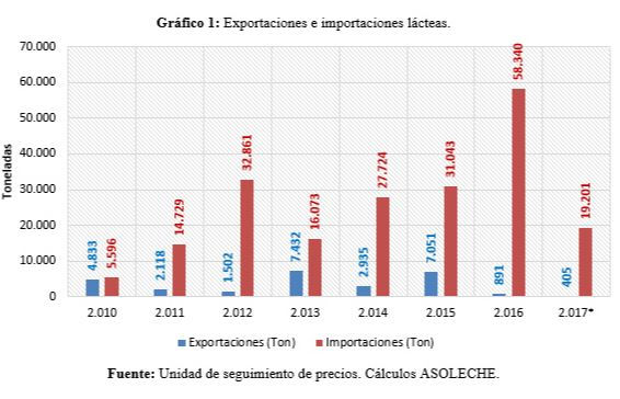 El Dato: Desde el año 2010 las importaciones de lácteos en Colombia presentan un comportamiento creciente, su nivel más alto se presentó en el año 2016 con 58.340 toneladas. – Fuente: Asoleche http://asoleche.org/2017/08/22/comercio-exterior-lacteo/